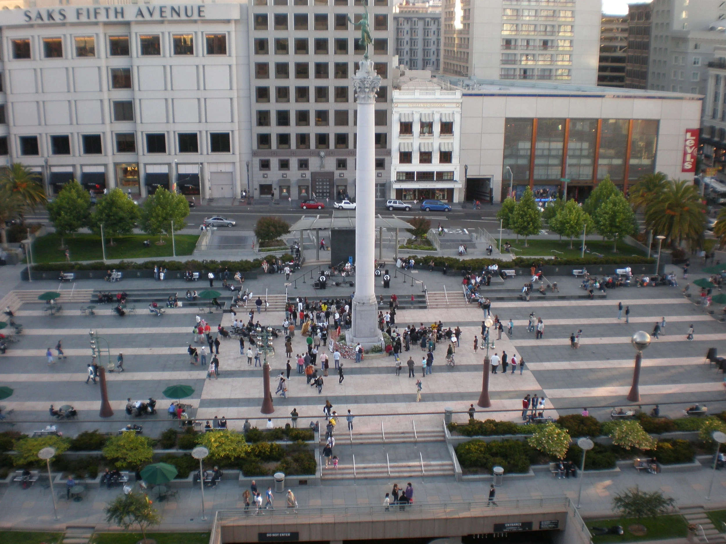 Union Square is the commercial hub of San Francisco. Most major hotels and department stores are crammed into the area surrounding the actual square, which was named for a series of violent pro-union mass demonstrations staged here on the eve of the Civil War. A plethora of upscale boutiques, restaurants, and galleries occupy the spaces tucked between the larger buildings. A few blocks west is the Tenderloin neighborhood, a patch of poverty and blight where you should keep your wits about you. The Theater District is 3 blocks west of Union Square.